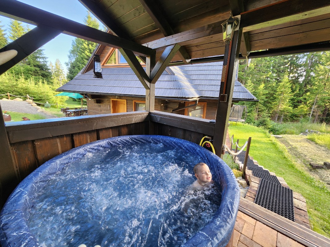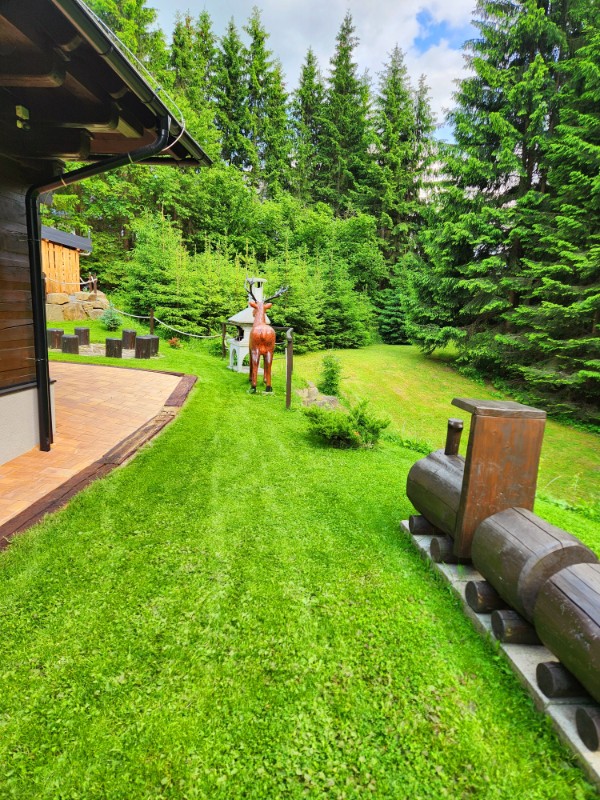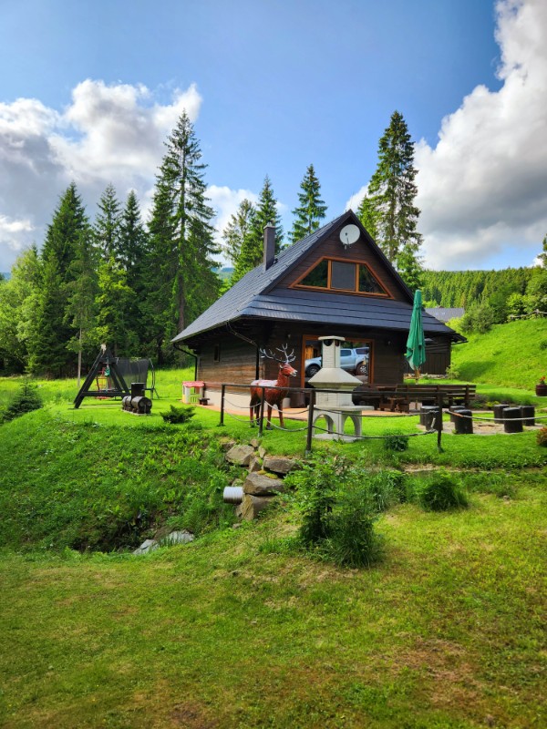 Poschodová drevenica v tradičnom slovenskom štýle s tromi útulne zariadenými spálňami, moderne vybavenou kuchyňou a spoločenskou miestnosťou s krbom a krásnym výhľadom na okolitý les zaručene očarí každého návštevníka. Večery pri praskajúcom ohni je možné tráviť v interiéri, ale takisto aj vonku za chatou, kde je okrem murovaného krbu pripravené aj posedenie s prírodným ohniskom. Pre deti je tu zriadené mini detské ihrisko a dospelí ocenia tri parkovacie miesta priamo pri drevenici. Samozrejmosťou je aj bezplatné pripojenie na internet, a to buď cez WiFi sieť, alebo s využitím stabilnejšieho káblového prenosu. Ubytovanie je vhodné pre rodiny s deťmi a stredne veľké skupinky, domáce zvieratá, nadmerný hluk ani fajčenie nie sú povolené.
