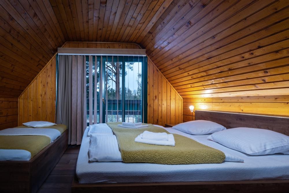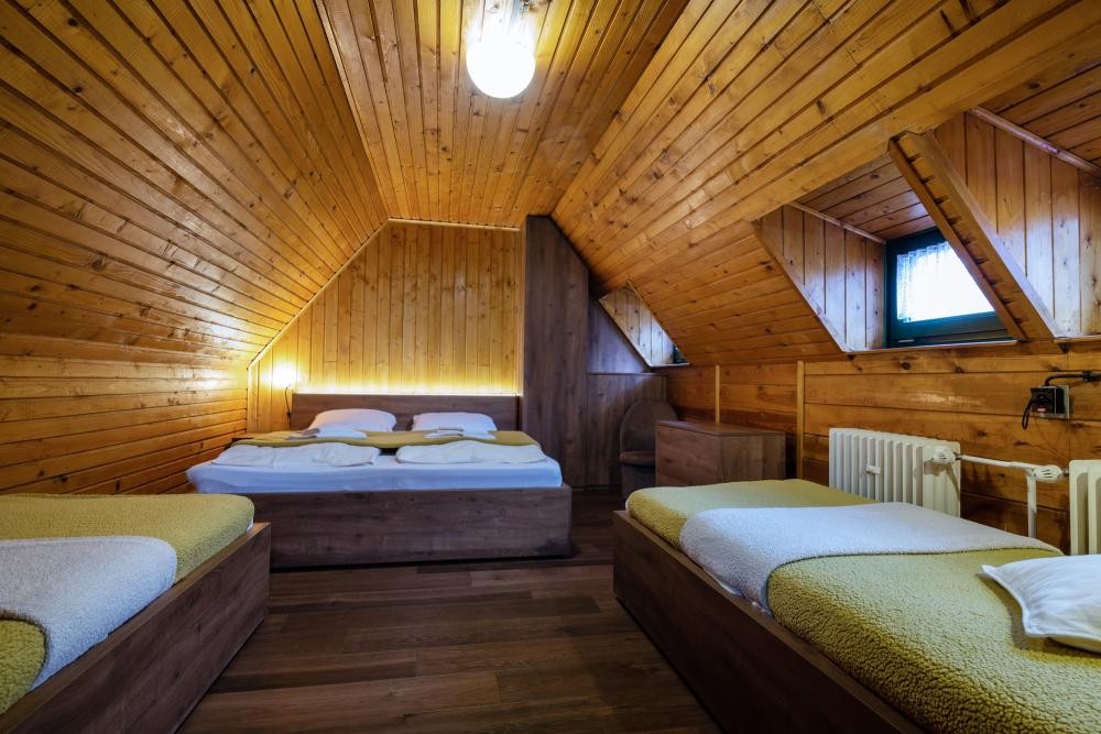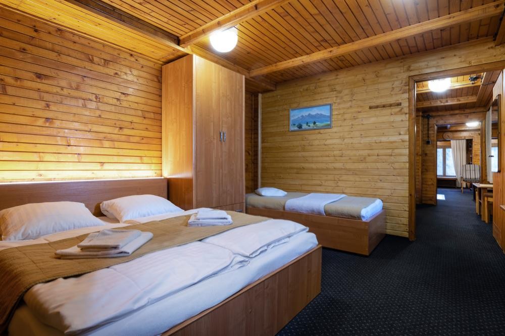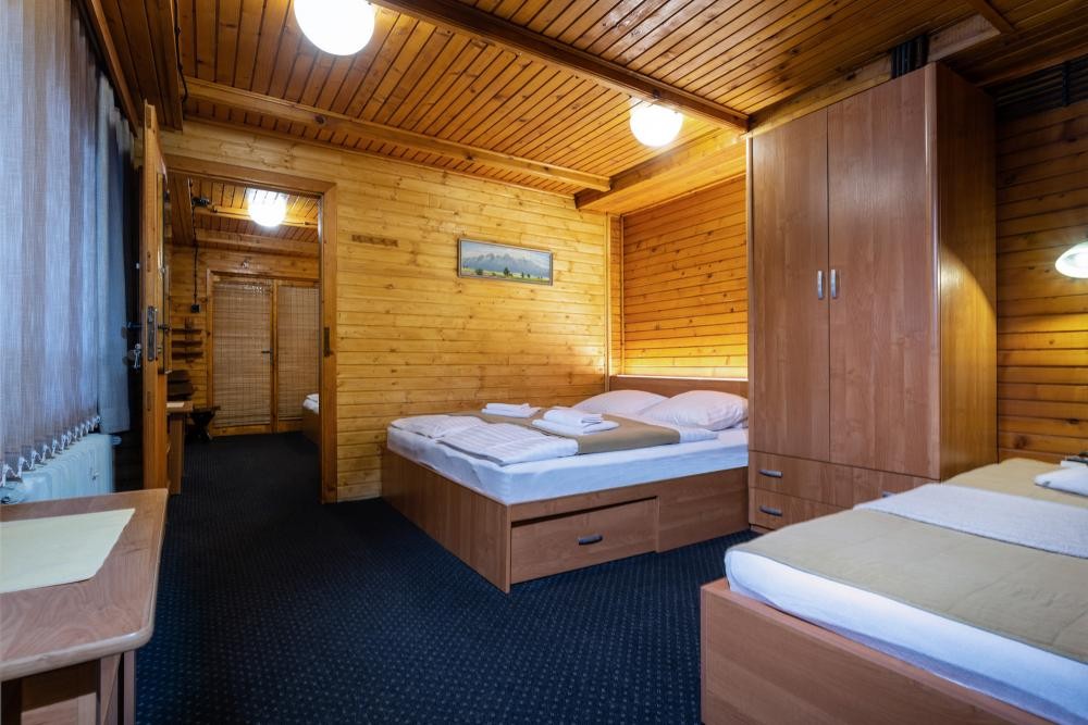 - Trojspálňový apartmán : jednolôžková izba (1x samostatné lôžko), trojlôžková izba (1x manželská posteľ, 1x samostatné lôžko), štvorlôžková izba (1x manželské lôžko, 2x samostatné lôžko), spoločenská miestnosť (krb, SAT/TV, gauč, CD prehrávač, spoločenské hry), kúpeľňa, samostatná toaleta, WiFi, chladnička, kanvica