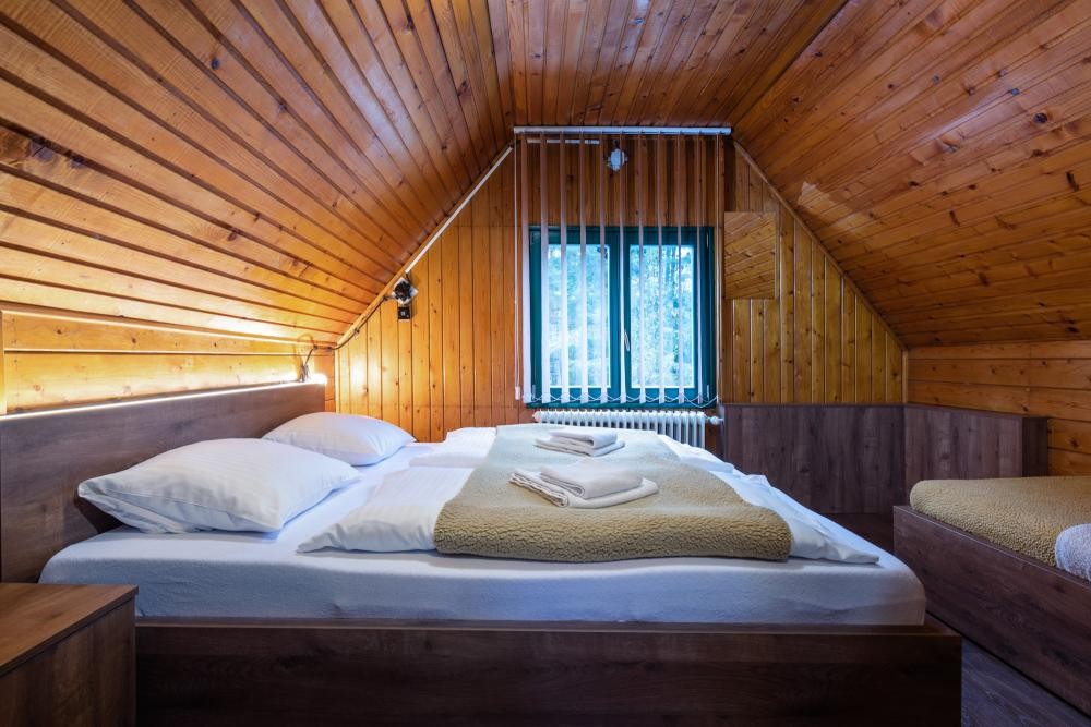 Celoročné ubytovanie s celkovou kapacitou 21 lôžok v dvoch oddelených apartmánoch so 7 izbami. Osemlôžkový apartmán disponuje jednolôžkovou, trojlôžkovou a štvorlôžkovou spálňou; apartmán s 13 lôžkami má 3 trojlôžkové izby a jednu štvorlôžkovú izbu. Ubytovacie jednotky majú vlastné sociálne zariadenia so sprchovacími kútmi a toaletami, chladničku, kanvicu a krb. K dispozícii je aj detská stolička a postieľka.