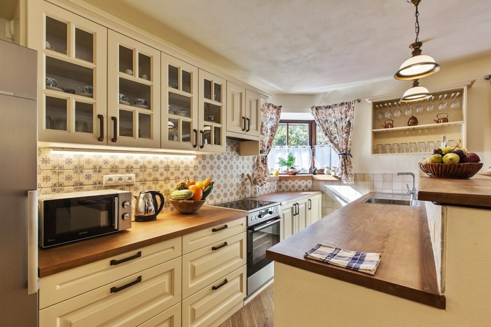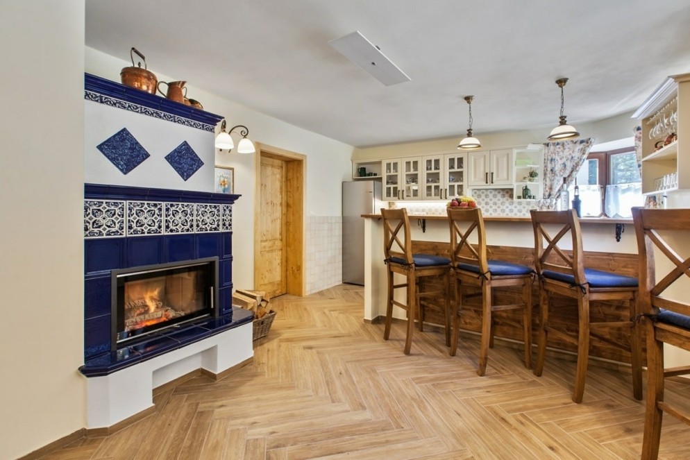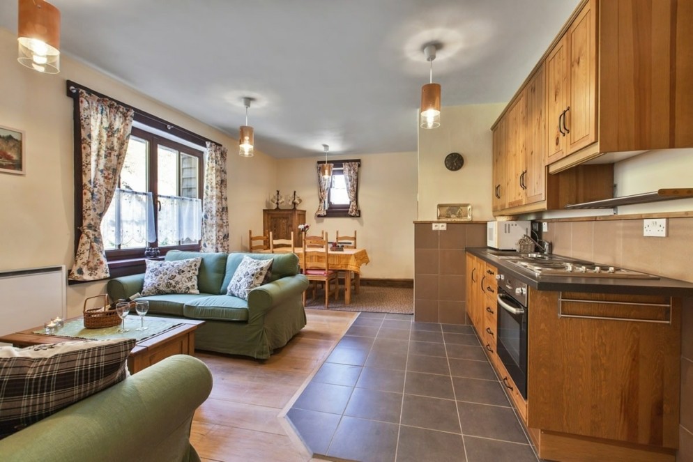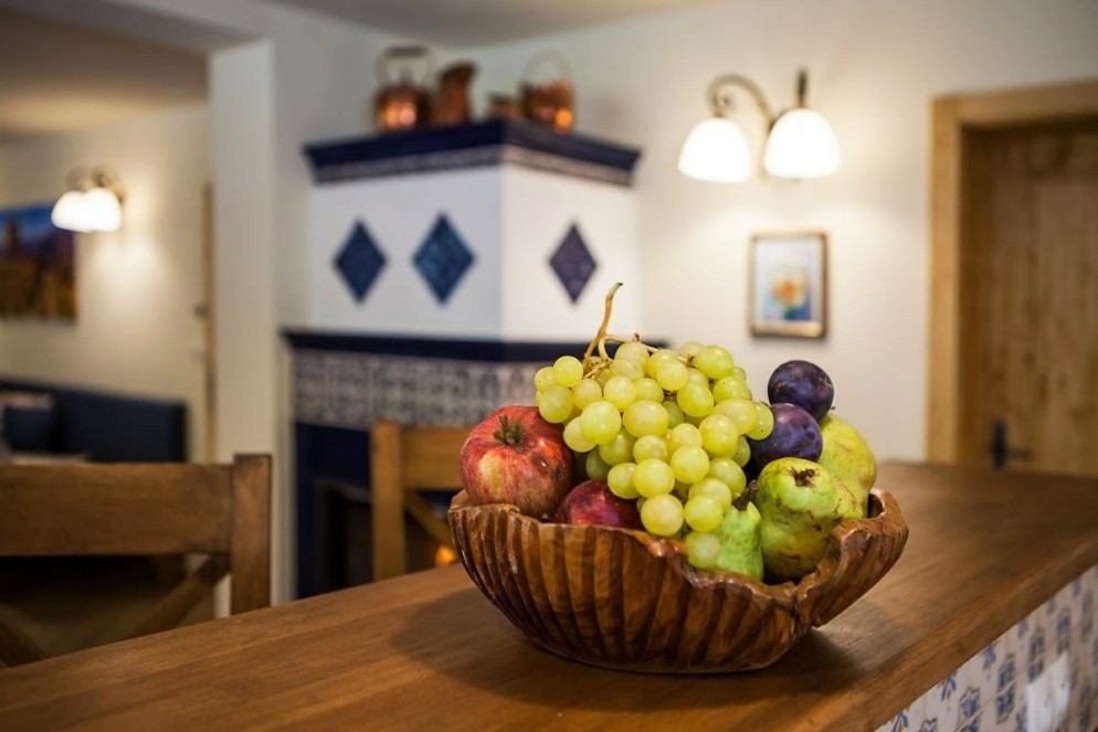 Súčasťou vybavenia chaty je plne zariadená spoločná kuchyňa (elektrický sporák a rúra, mikrovlnná rúra, umývačka riadu, chladnička, mraznička, rýchlovarná kanvica, hriankovač) s jedálenským sedením. Taktiež v rodinnom apartmáne (sklokeramická varná doska, chladnička, mraznička, mikrovlnná rúra, rýchlovarná kanvica, kachľová piecka) a štúdiu (2-platnička, drez, malá chladnička, kanvica, vybavenie pre základné stolovanie a poháre pre 4 osoby, hrnce, panvica, nože, vývrtka na víno) aj s jedálenským sedením. V okolí sa nachádza niekoľko reštaurácií.