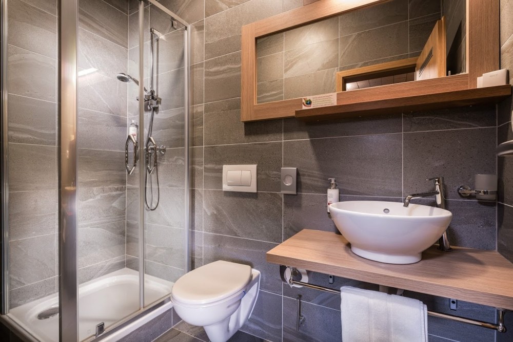 Izba s dvoma oddelenými lôžkami, alebo manželskou posteľou, bezpečnostné zábrany na posteľ pre deti, posteľná bielizeň, TV-SAT, WiFi, trezor, telefón, budenie telefónom/budík, pracovný stôl, sociálne zariadenie (vaňa alebo sprchový kút, bezplatné toaletné potreby, uteráky, župan, toaleta), drevená alebo parketová podlaha, šatníková skriňa, výhľad na hory. - RODINNÁ IZBA - HLAVNÁ CHATA