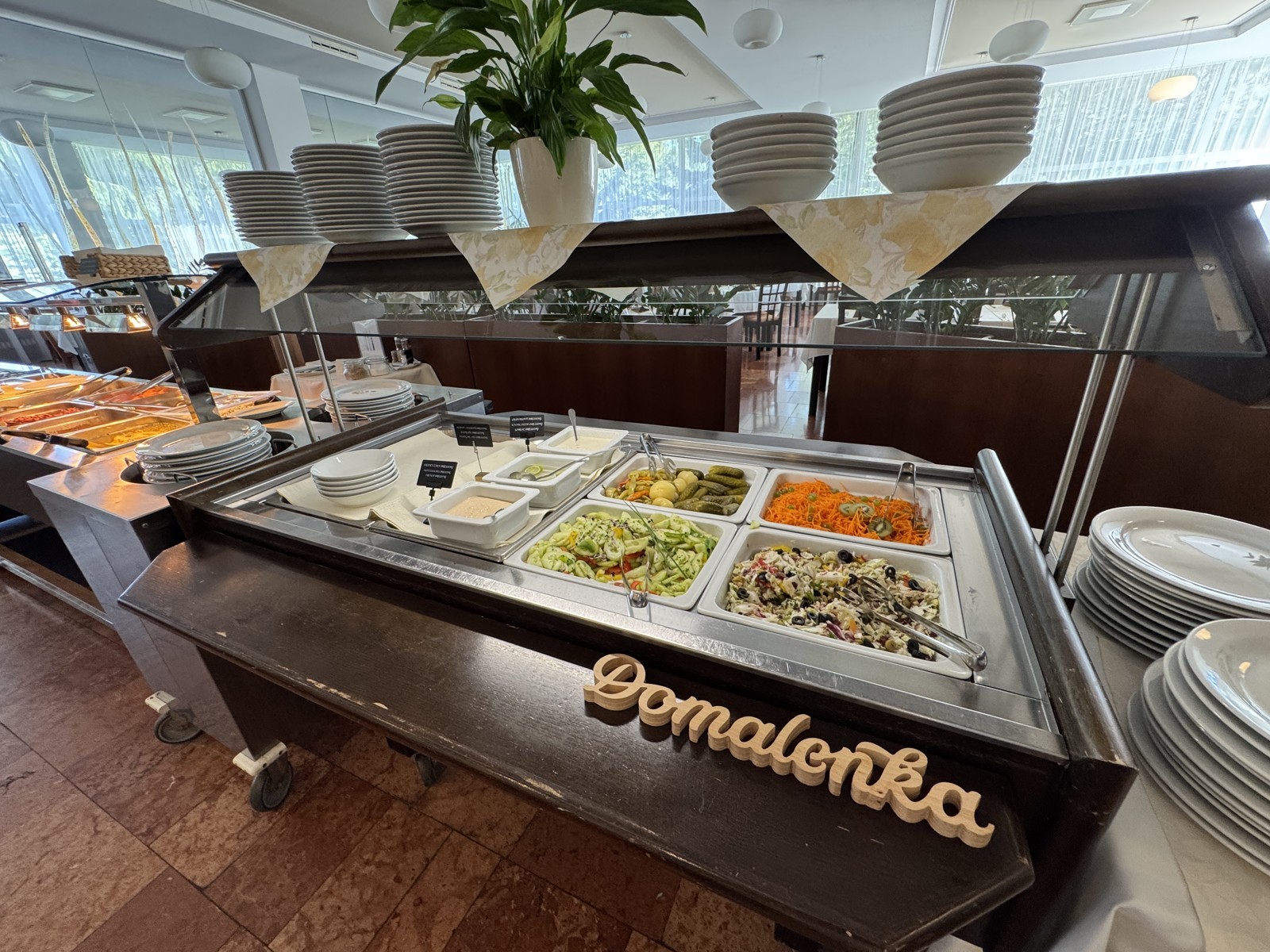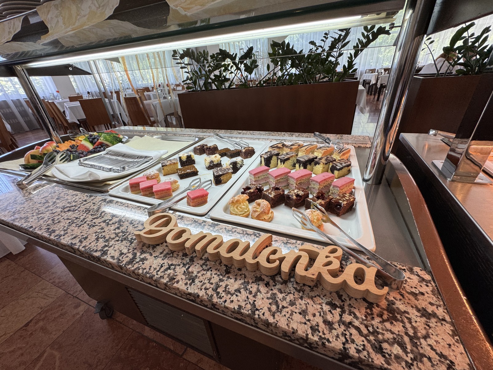 - raňajky (07:00 - 10:00 h), obedy (11:30 - 14:00 h) a večere (18:00 - 20:30 h) formou bufetu, vrátane šalátového bufetu, dezertov, ale aj osobitný kútik pre ľudí s intoleranciami