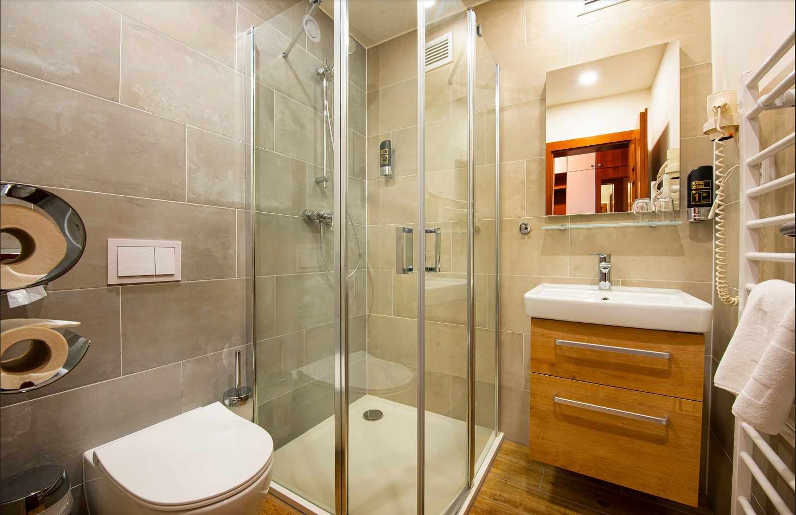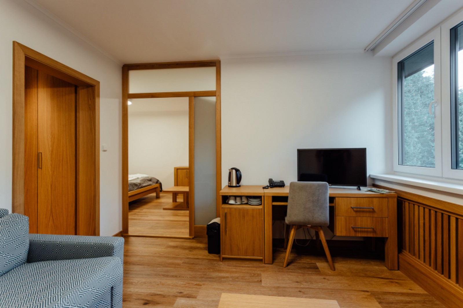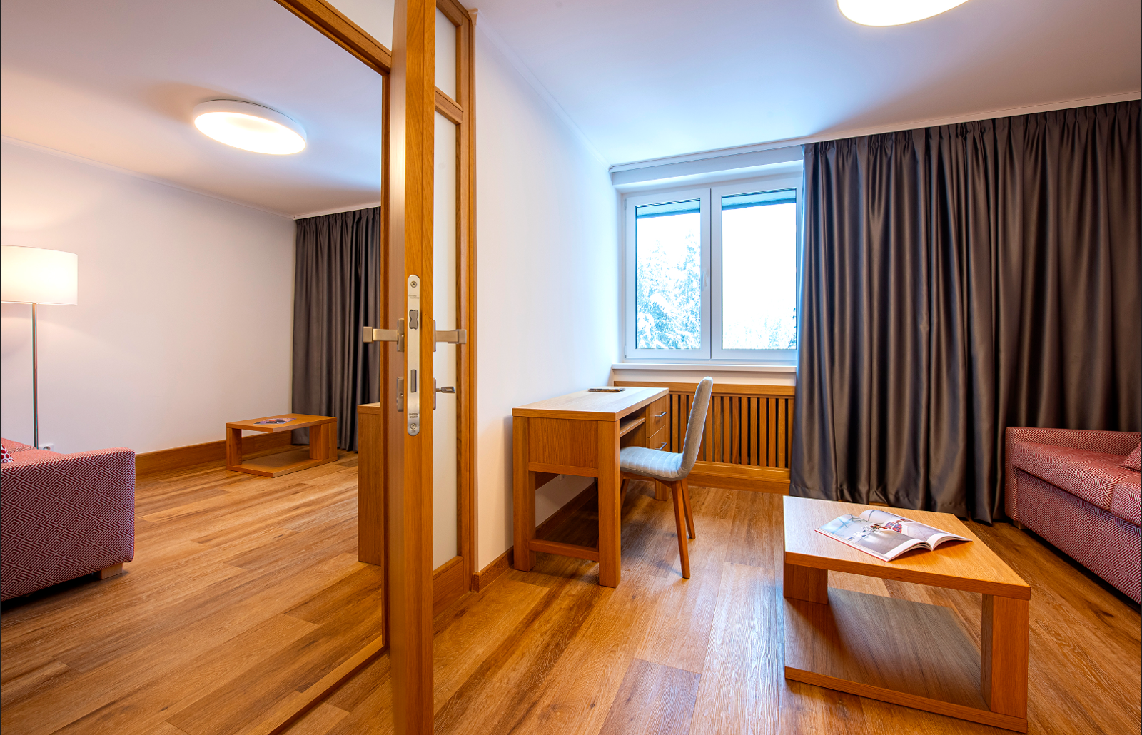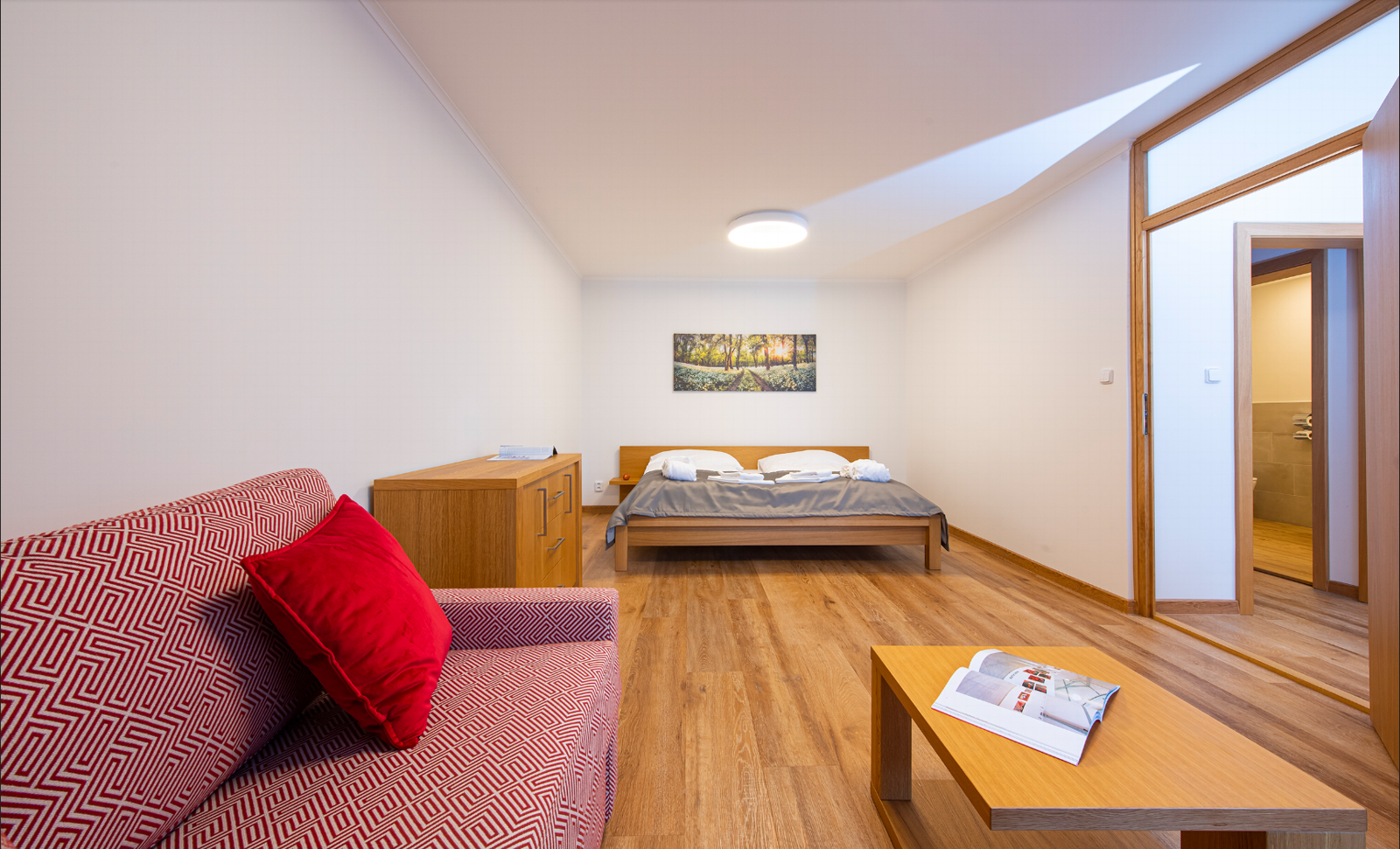 - Dvojlôžkové izby s možnosťou jednej alebo dvoch prísteliek s vlastným sociálnym zariadením, telefónom a farebným televízorom so satelitným príjmom programov