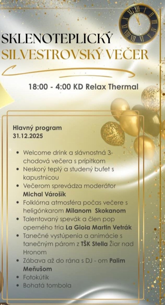SILVESTER 2025 A NOVÝ ROK V KÚPEĽOCH SKLENÉ TEPLICE
