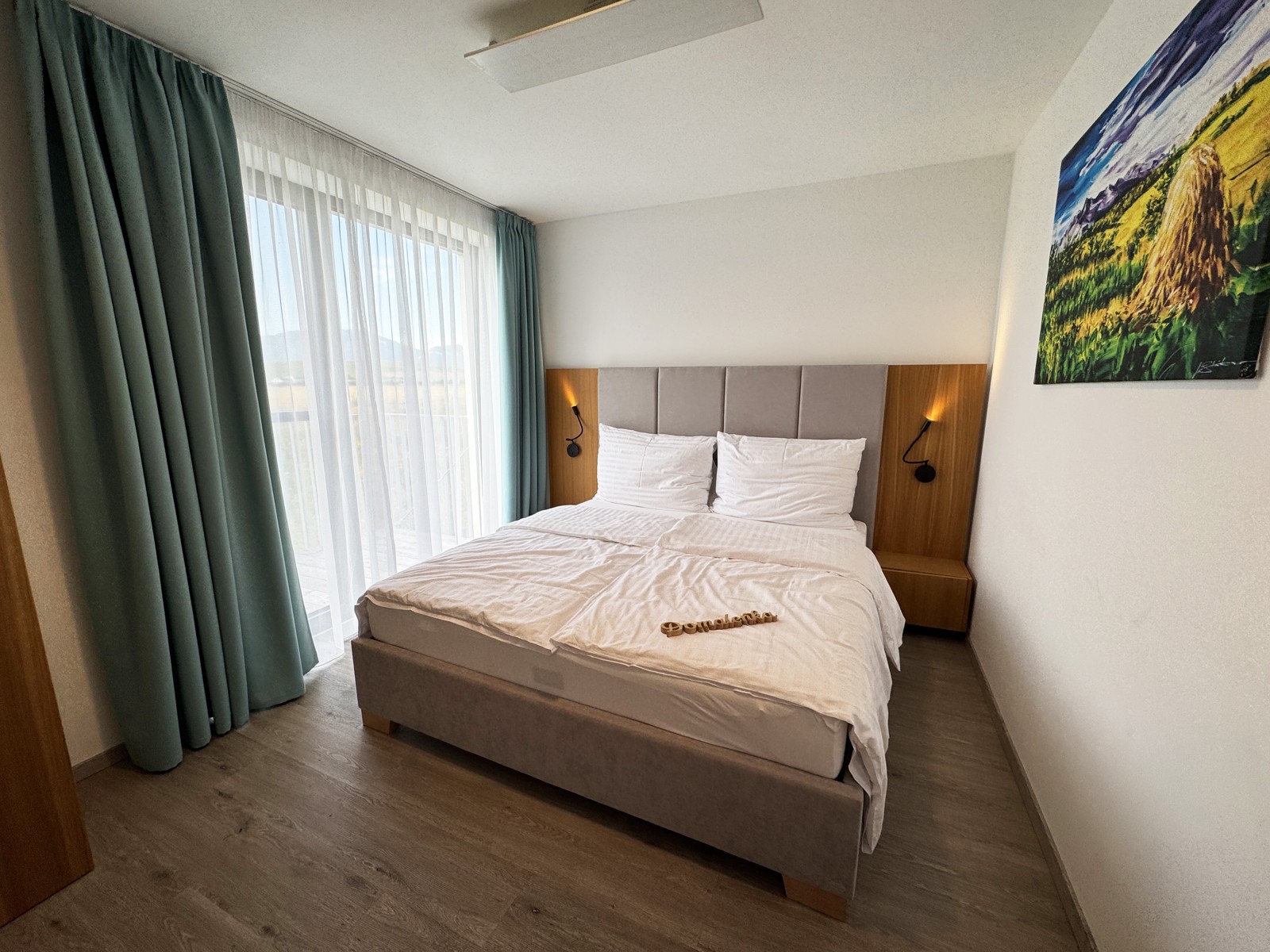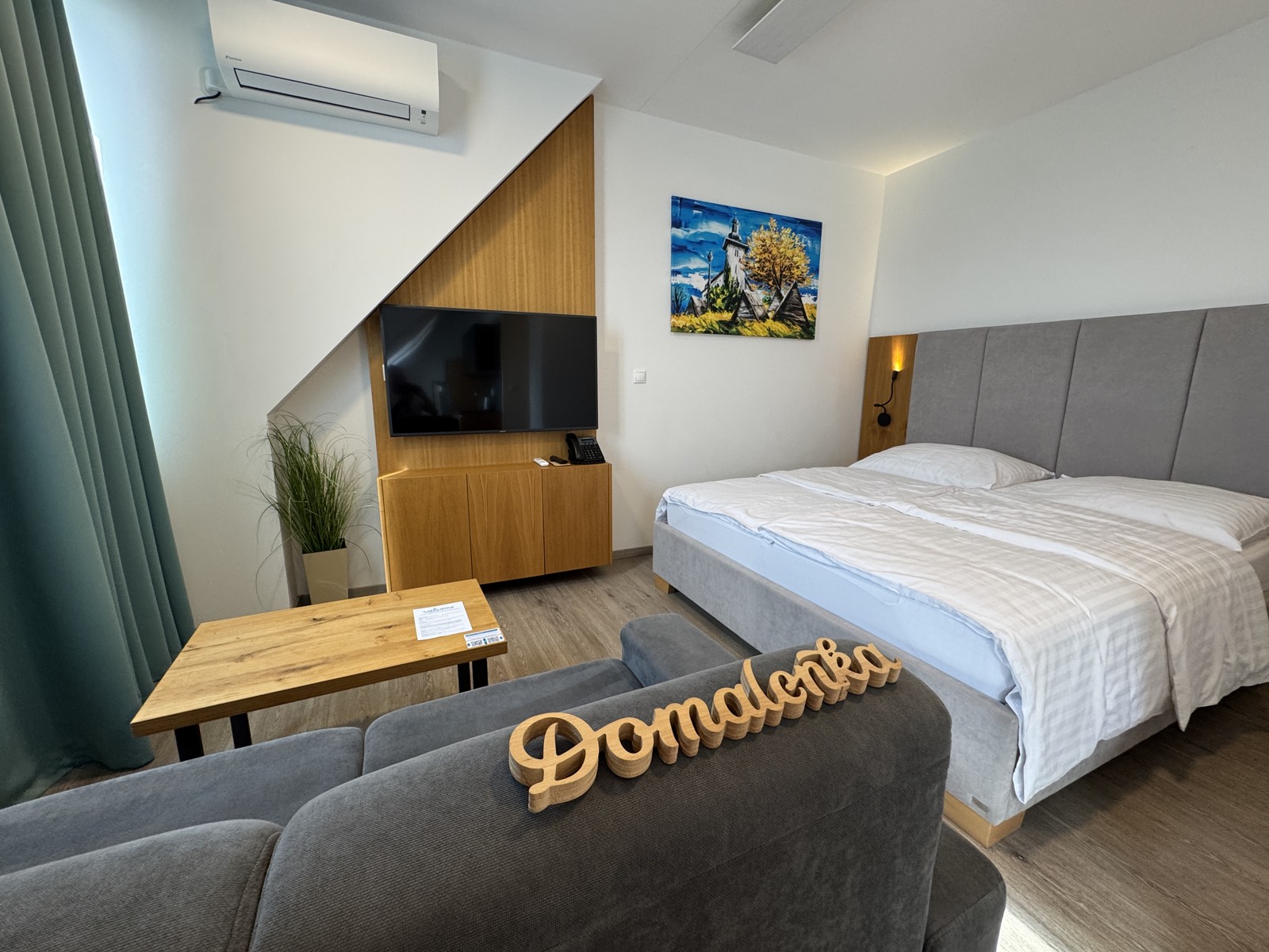 1x manželská posteľ, rozkladací gauč v obývacej časti (po rozložení vytvorí dve plnohodnotné lôžka na spanie) - Apartmán Standard (2+2)