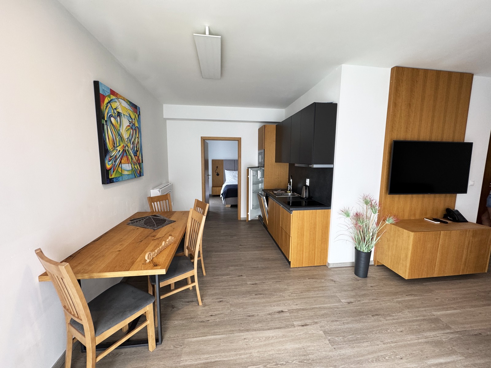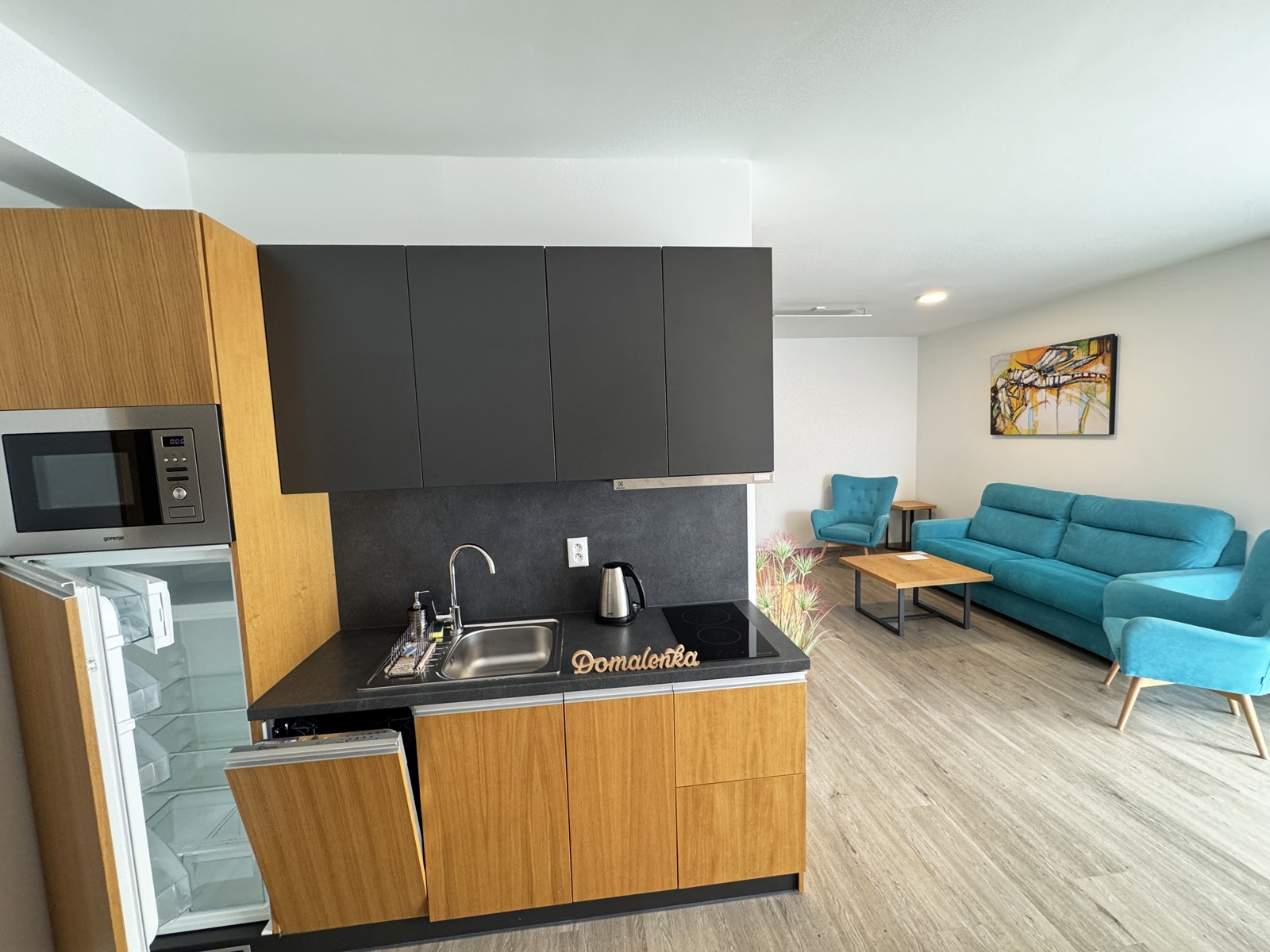 Všetky apartmány majú okrem spálni obývaciu časť s gaučom a TV, plne vybavenú kuchynku, jedálenské sedenie, sociálne zariadenie (sprcha/WC).