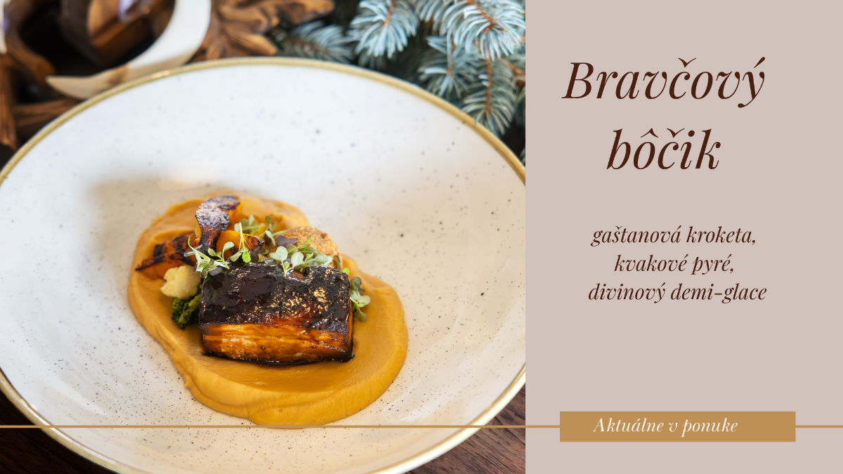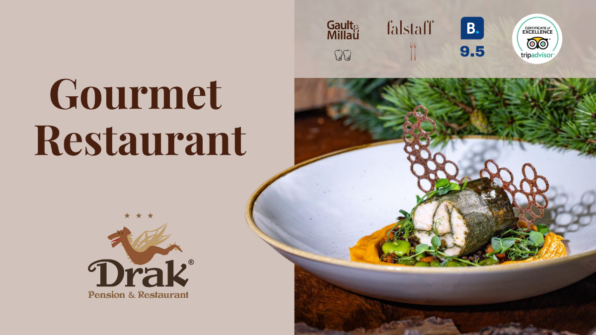 Súčasťou penziónu je každoročne oceňovaná reštaurácia (Falstaff, Gault & Millau) s domácou kuchyňou a ponúka možnosť raňajok (podávané formou švédskych stolov alebo na objednávku podľa individuálnych prianí hostí, možnosť servírovať raňajky aj priamo na izbu), polpenzie aj plnej penzie (podľa aktuálnej ponuky a dohody). Reštaurácia je vhodná aj pre skupiny a firemné pobyty, pričom dôraz kladie na poctivú slovenskú kuchyňu a regionálne špeciality. Stravovanie priamo v penzióne zabezpečuje hosťom pohodlie bez nutnosti presunov a je ideálnym doplnkom rekreačných aj skupinových pobytov. Sučasťou apartmánu v Apartmánovom dome je aj kuchyna (Mikrovlnná rúra / Mraznička / Rýchlovarná kanvica / Set na kávu/čaj / Nespresso / Varná doska) s jedálenským sedením.