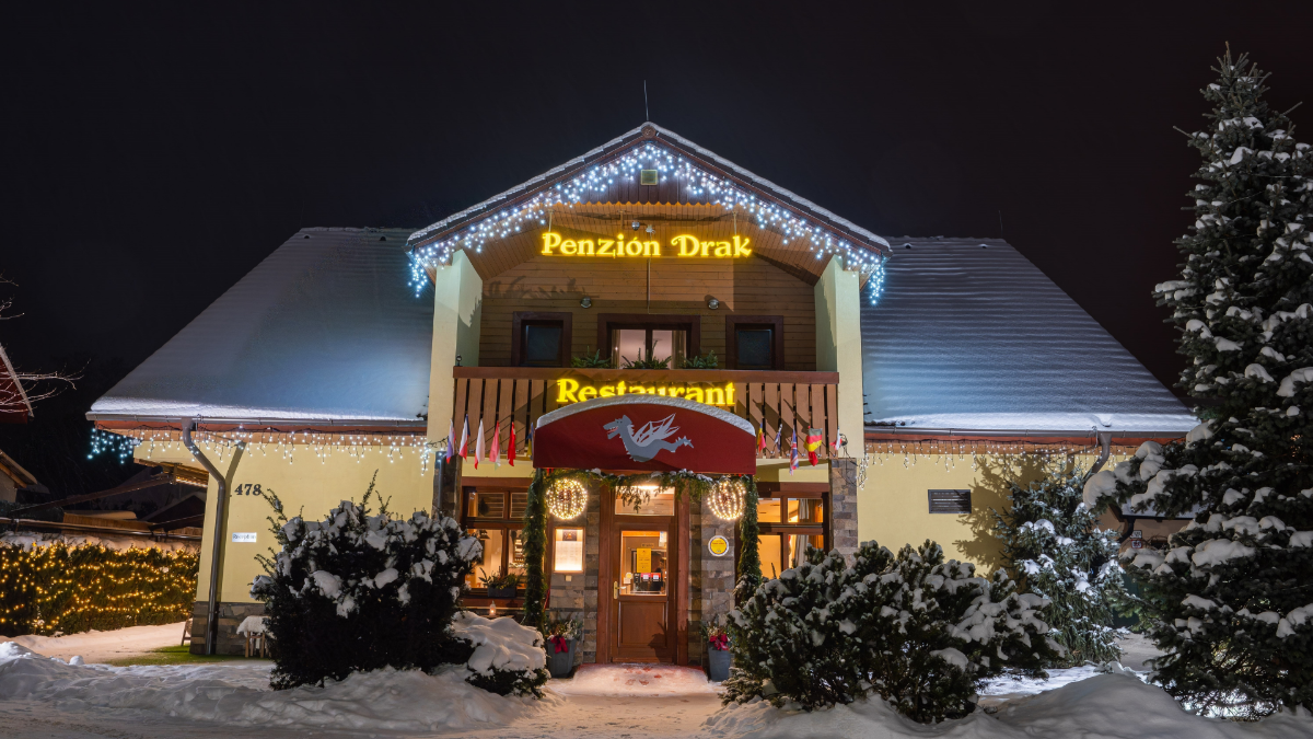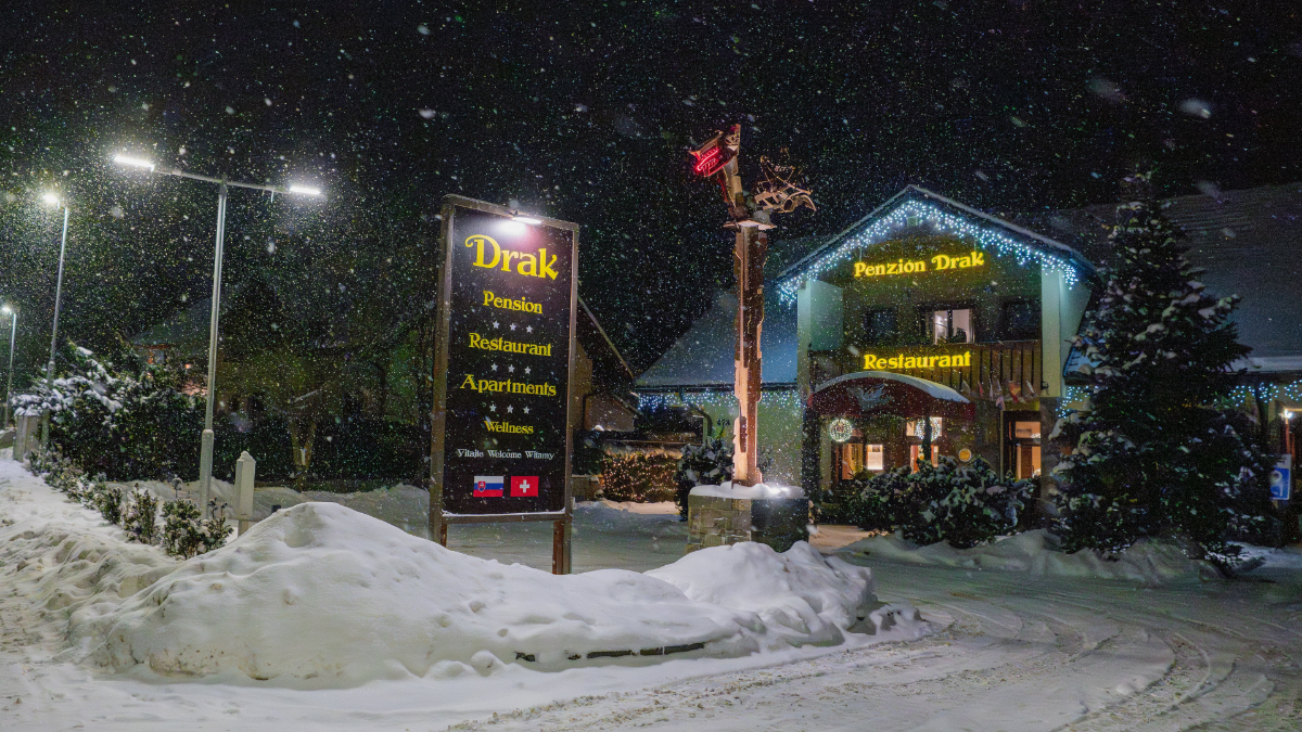 Penzión a apartmány Drak je rodinne vedené ubytovanie v obci Demänová pri Liptovskom Mikuláši, ktoré spája pohostinnosť, pokoj prírody a moderný komfort v srdci Liptova – jednej z najpopulárnejších turistických oblastí Slovenska. Jeho názov je inšpirovaný legendou o drakovi z Demänovskej doliny – a práve táto atmosféra tradícií a dobrodružstva sa odráža v celkovom zážitku z pobytu. Ponúka štýlové izby a apartmány, hostia môžu využiť reštauráciu s kreatívnou kuchyňou, kde sa servírujú jedlá z čerstvých lokálnych surovín, a taktiež wellness & spa zónu s možnosťou relaxu vo vírivke, saune či parnom kúpe (Fínska sauna, Parný bylinkový kúpeľ, masážny vírivý bazén HotSpring, Oddychová miestnosť, Wellness procedúry a masáže). Súčasťou ubytovania je recepcia, spoločné priestory a parkovanie monitorované kamerovým systémom priamo pri objekte. Hostia majú k dispozícii aj úschovňu lyží a bicyklov a detský kútik. Pobyt v penzióne je tak pohodlný aj pre rodiny s deťmi a aktívnych hostí.